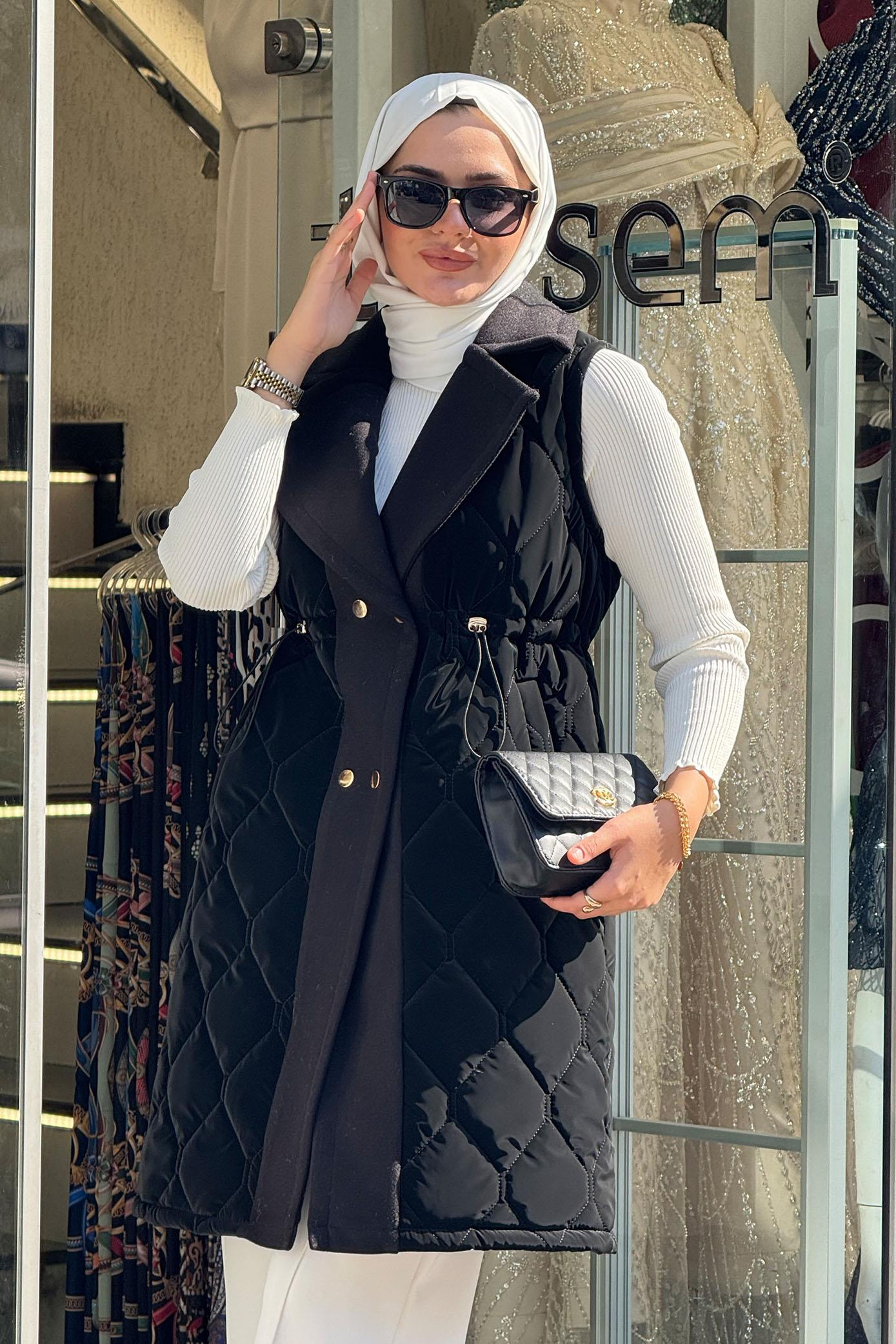 Ara Boy Kapitone Kaşe Detaylı Yelek Siyah (ER2204)