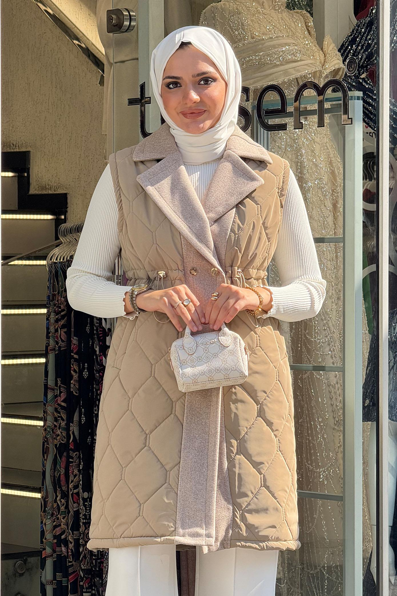 Ara Boy Kapitone Kaşe Detaylı Yelek Vizon (ER2204)