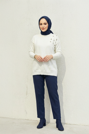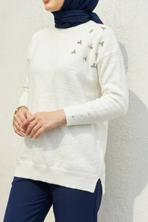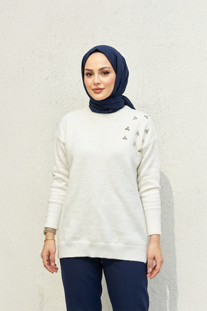 Taş Detaylı Yumuşak Angora Triko Bluz