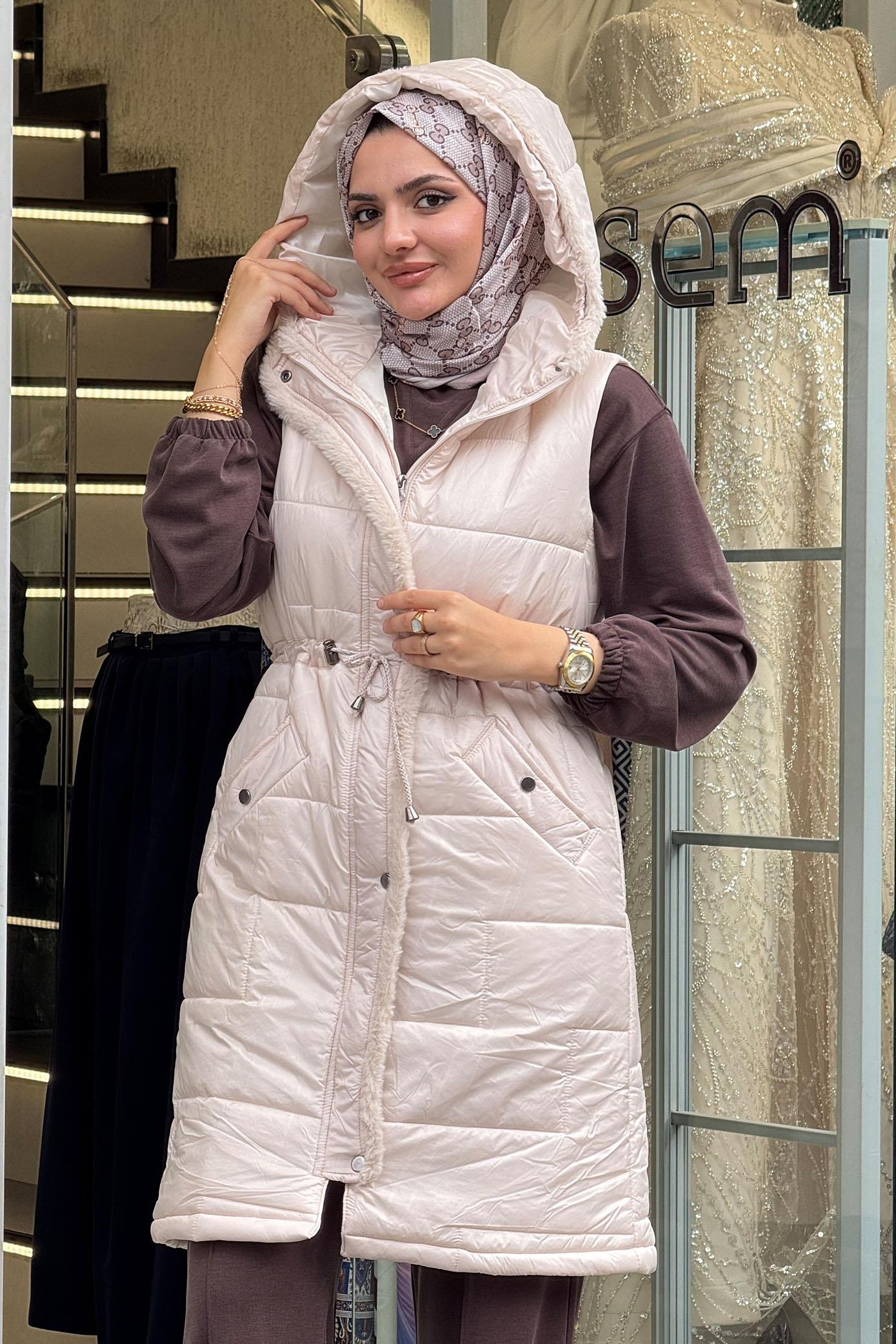 Kürk Detaylı Kapitone Yelek Bej (20208)