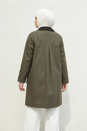 Özel Detay: Yaka kısmında ve göğüs cep detayında kullanılan lüks kadife kumaş parçalar, ürüne sofistike ve zarif bir dokunuş katmaktadır.