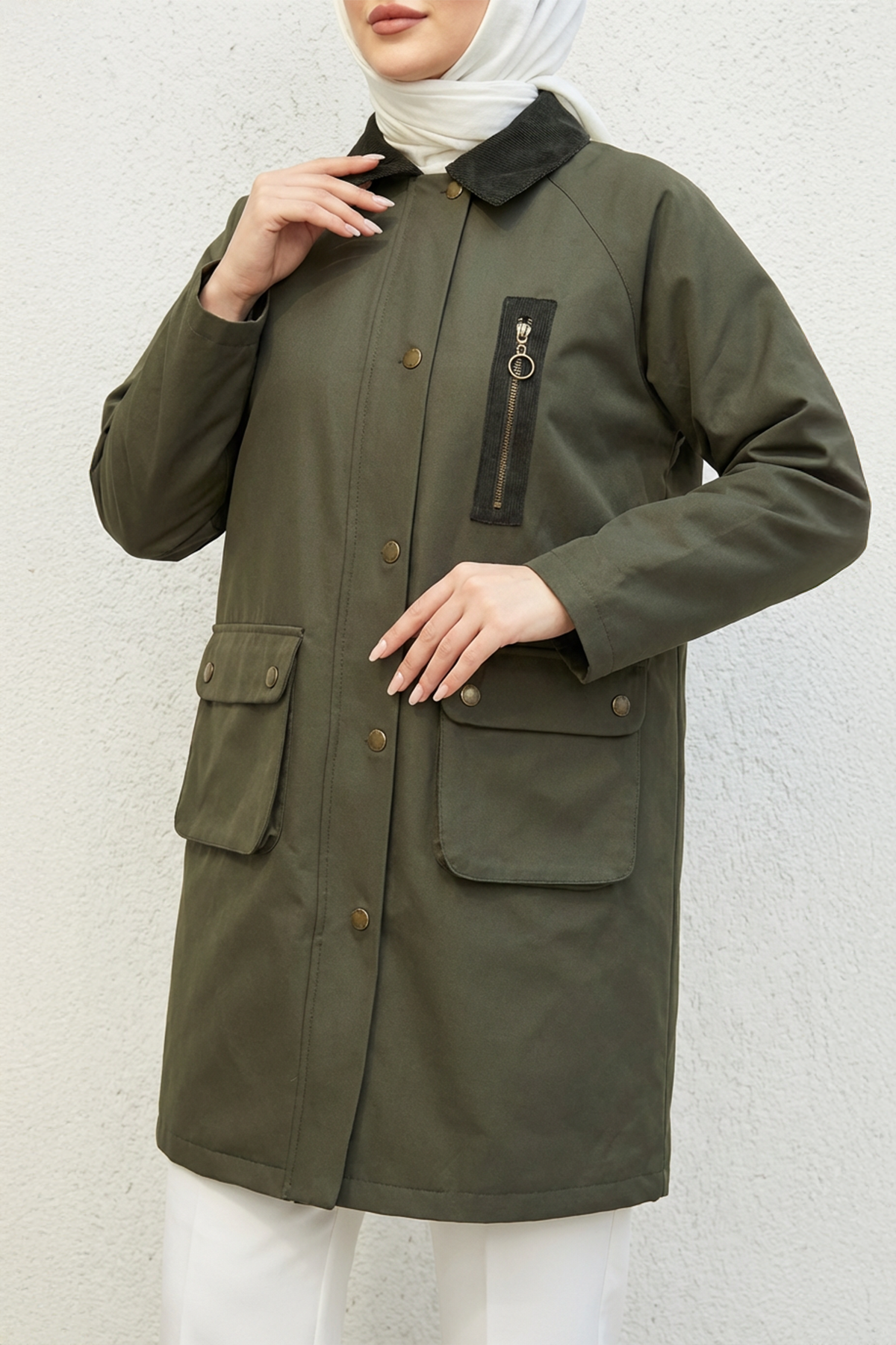 Model: Hakim yaka, önü çıtçıt ve fermuar kapamalı, uzun boy parka.