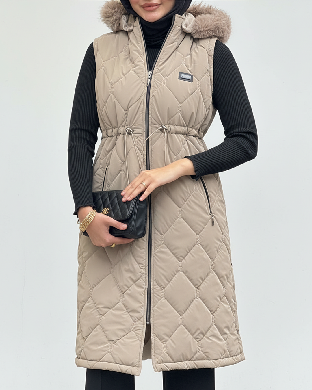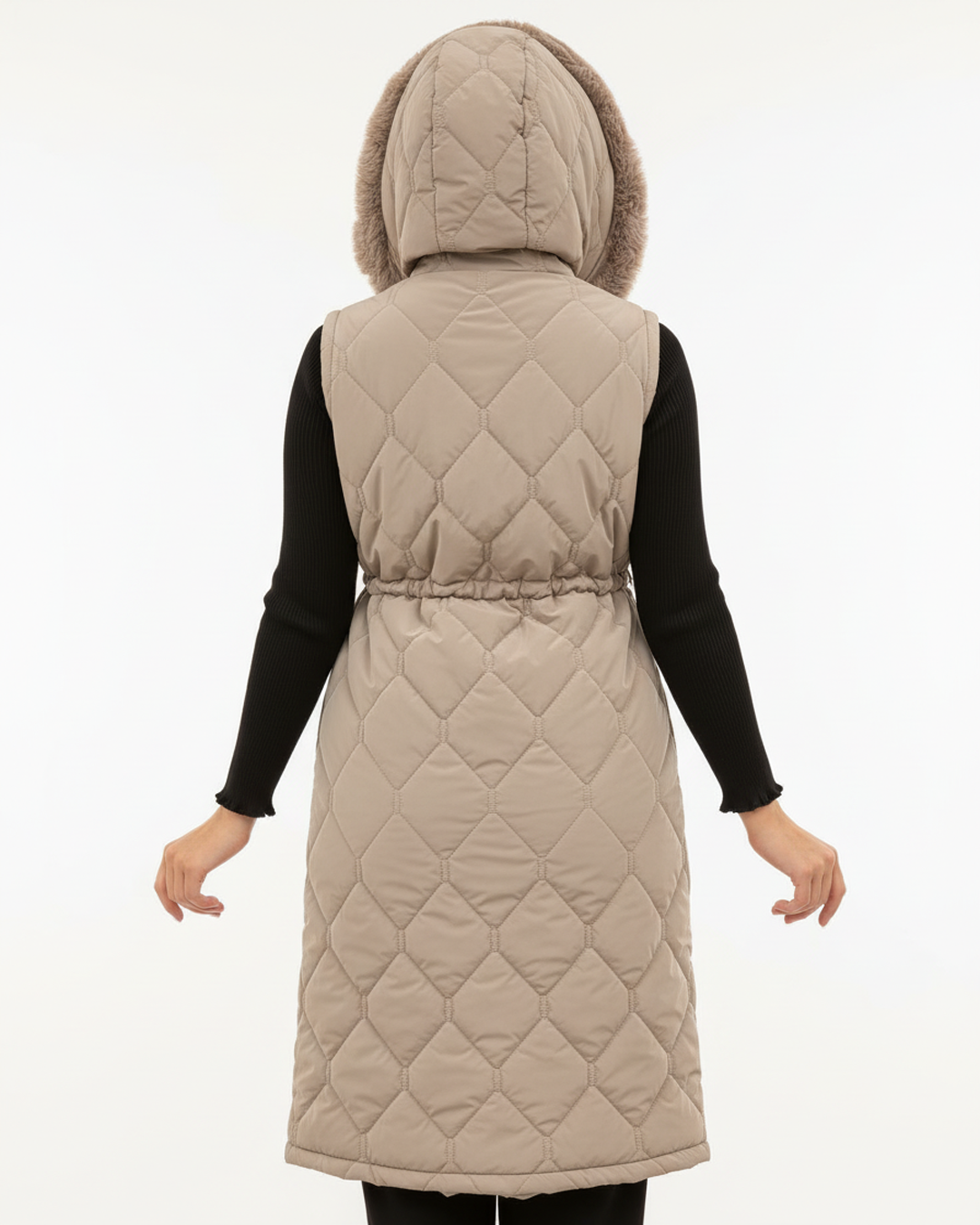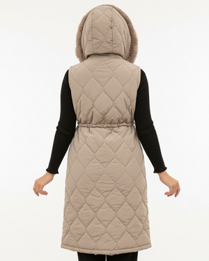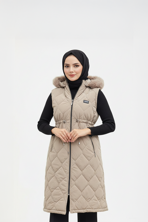 Kış ve mevsim geçişlerinde stilinizden ödün vermeden sıcak ve konforlu bir görünüm yaratmak isteyenler için ideal bir parça! Uzun kesimi, baklava desenli kapitone kumaşı ve kürk detaylı kapüşonu ile modern ve şık bir duruş sergiler. Ayarlanabilir beli sayesinde vücuda tam oturur ve zarif bir silüet oluşturur.