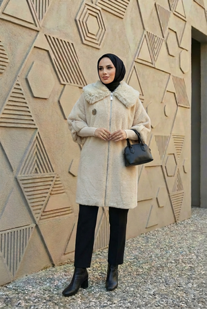 Angora Kumaş Kürk Yaka Peluş Ceket